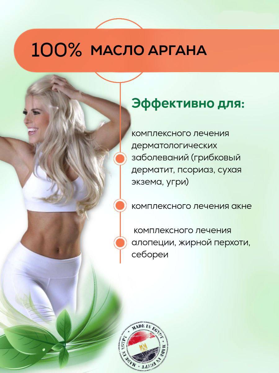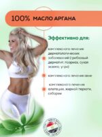 Масло Аргана является эффективным натуральным средством, предназначенным для ухода за поврежденными, ломкими и секущимися волосами. Аргановое масло восстанавливает структуру поврежденных волос, придает им естественный здоровый блеск, мягкость, шелковистость, защищает волосы от вредного воздействия факторов окружающей среды и химических веществ. МаслоАргана используется как часть комплексного лечения алопеции, жирной перхоти и себореи.
