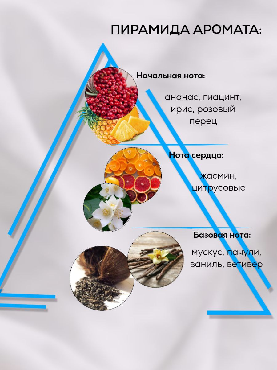 Свежий, приятный фруктовый аромат сразу заметен в верхней ноте. Цветочный аромат гиацинта и ириса дополняется свежестью ананаса. Верхняя нота абсолютно очаровательна – но подождите, что будет дальше….